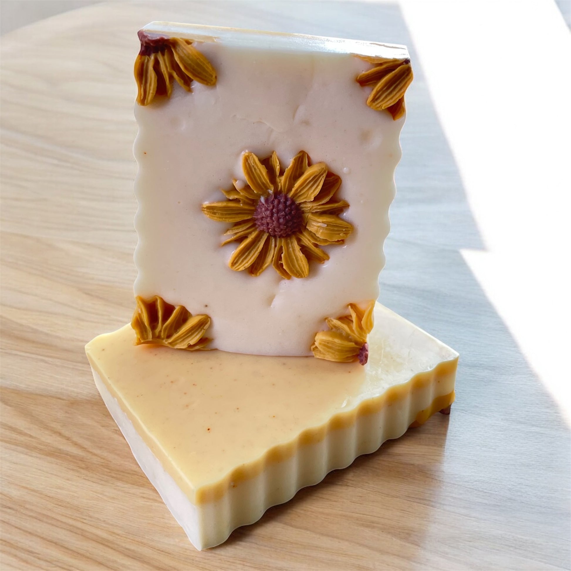 Topped with a dried sunflower, it’s a sunny reminder of slow mornings and self-care rituals.